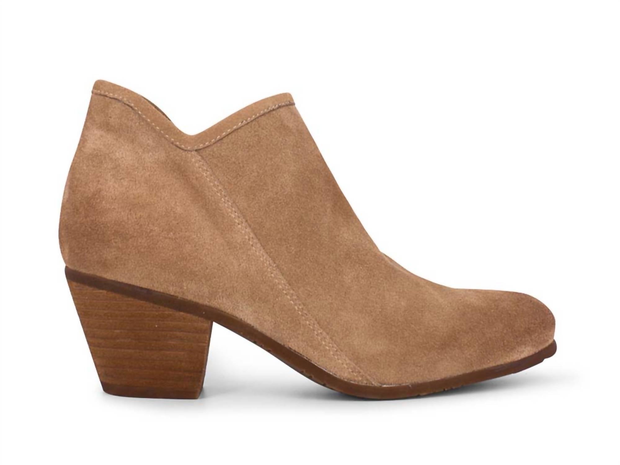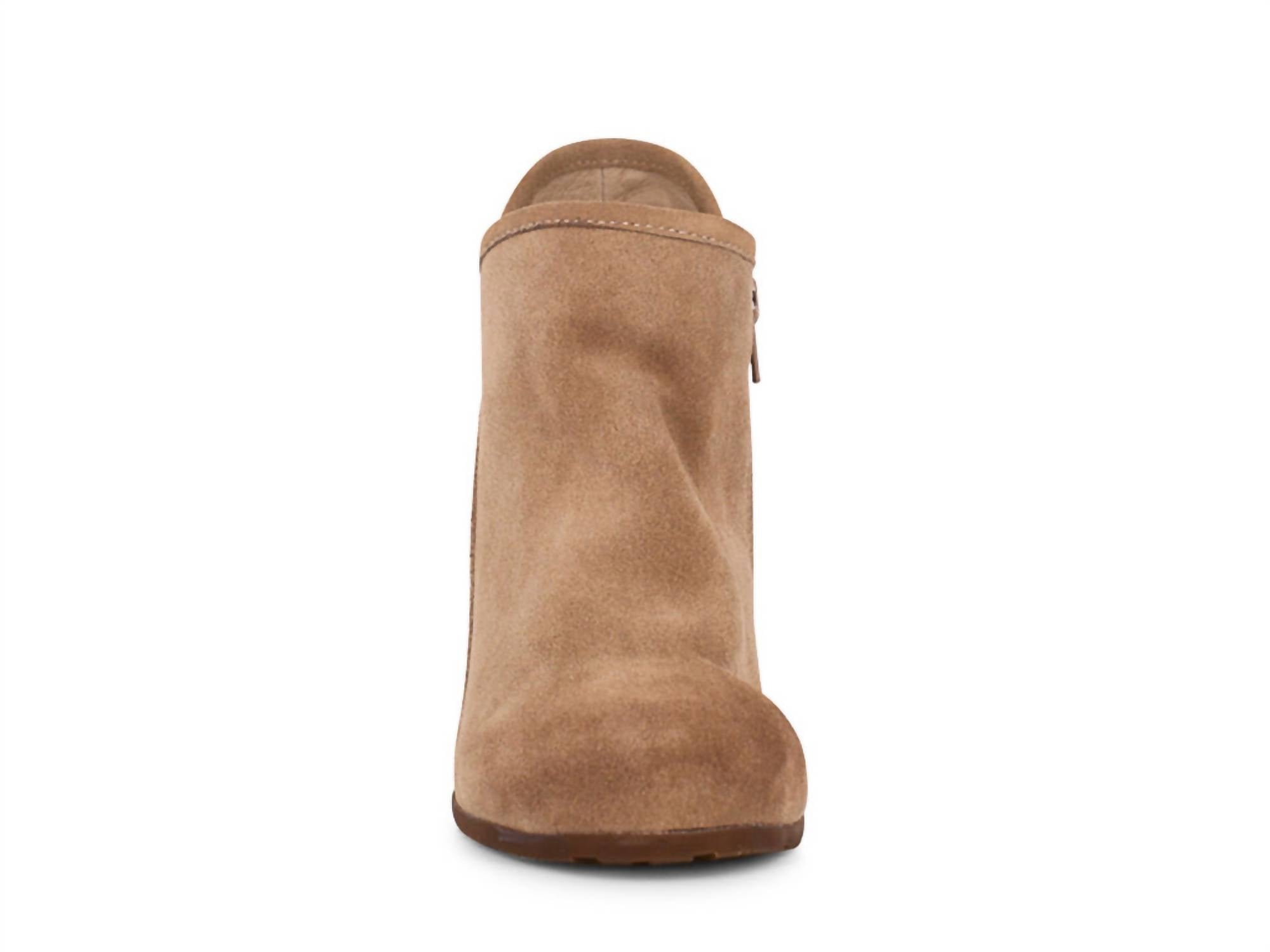 Step out in confidence and showcase your impeccable taste with these fashionable and versatile boots. Their classic style will have you reaching for these boots season after season. Introducing the Women's Dalia Heeled Bootie by CHOCOLAT BLU, a chic addition to your footwear collection in a sophisticated latte hue. Crafted with a suede upper and leather lining, this bootie offers ultimate comfort with a cushioned footbed. The design features a 2" block heel and a durable rubber sole for steady support. Perfect for any occasion, these heeled booties bring style and ease with every step.