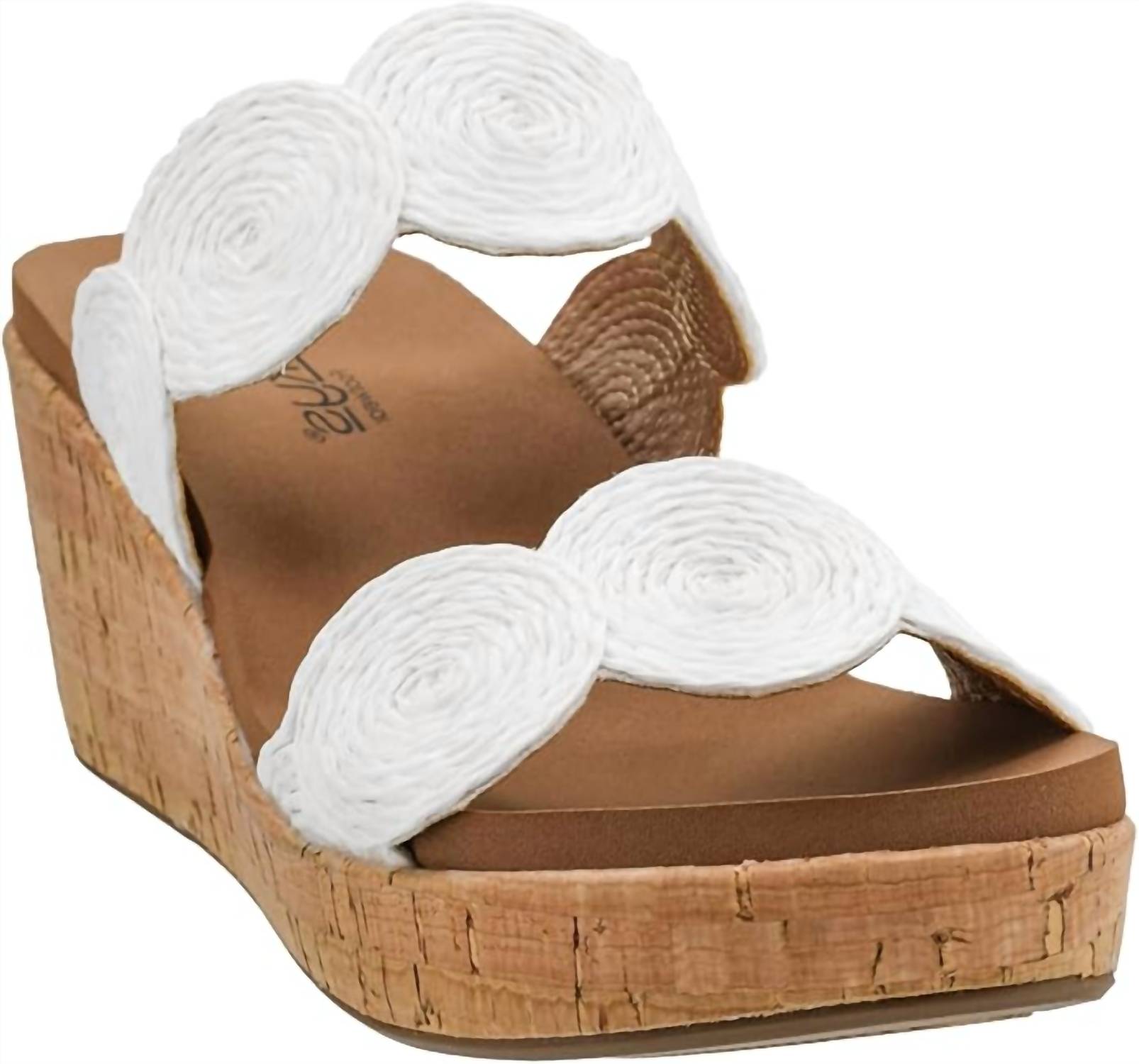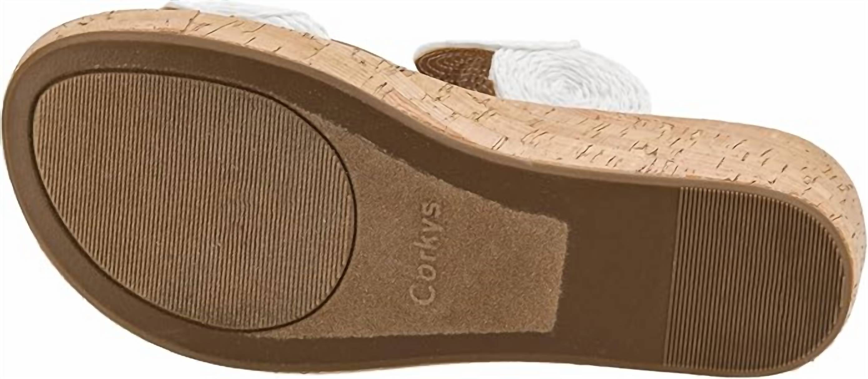 Timeless wedges that will be relevant season after season. Step into sophisticated style with the Women's Make A Toast Wedge Sandal by Corkys Footwear. With a mid-height cork wedge heel of 2.75 inches and a 1.25-inch platform, these sandals offer both height and stability. In a versatile ivory hue, they feature a double strap design, rounded toe, and swirl rope accents, blending comfort and elegance perfectly. Ideal for summer outings or special occasions like a Mother's Day dinner party, these sandals promise comfort with every step thanks to their foam footbed.
