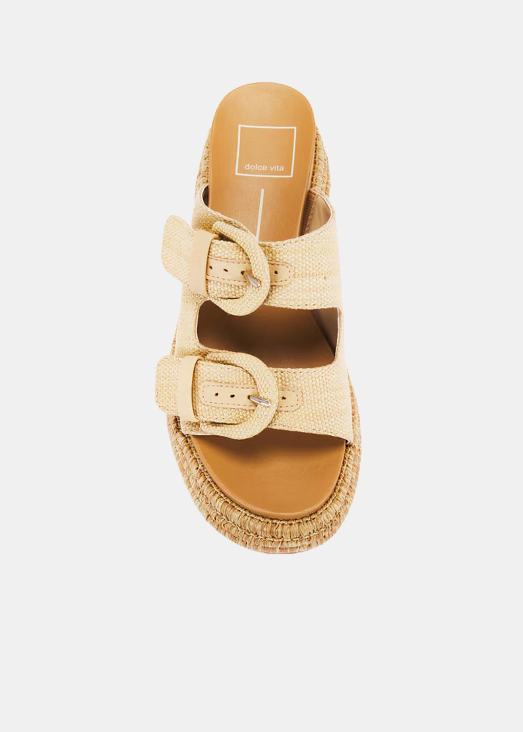 Classicly cute and all-day-wearable. We love this sandal. Step into summer with the Dolce Vita Women's Witny Sandals, crafted in a chic Light Natural Woven Raffia. These sandals feature an open toe design and a boho chic style, perfect for vacation and casual outings. Ideal for pairing with anything from a flowy dress to jeans, they embrace the flat heel trend for comfort and style. Effortlessly embody summer vibes with this must-have accessory for your wardrobe.