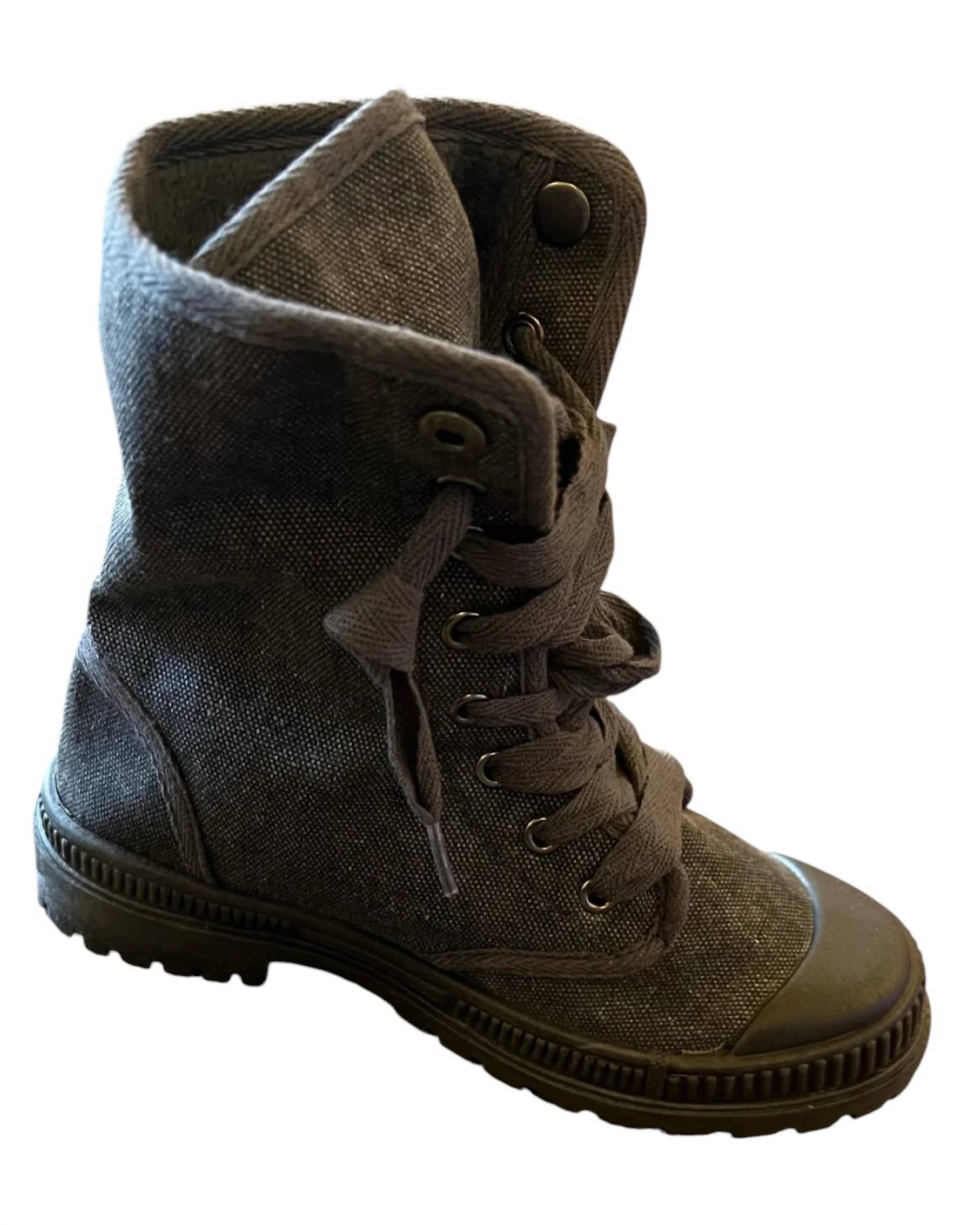 Say hello to the perfect, most versatile boot. The ankle height makes this style easily transition from day to night. Wear them with your favorite skinny jeans and tee for a more laid back look, or pair them with your favorite mini dress and jacket for a night out on the town. Step into comfort with the Women's Canvas Ankle Boots by Very G, expertly crafted in chic charcoal grey. Boasting a durable canvas material, these boots offer a round toe design and a flexible shaft that can be pulled down and secured with a button snap. The flat heel and grip-enhanced soles ensure stability and all-day comfort, making them a perfect choice for any casual outing. Enjoy stylish versatility with these ankle boots designed for adult women.