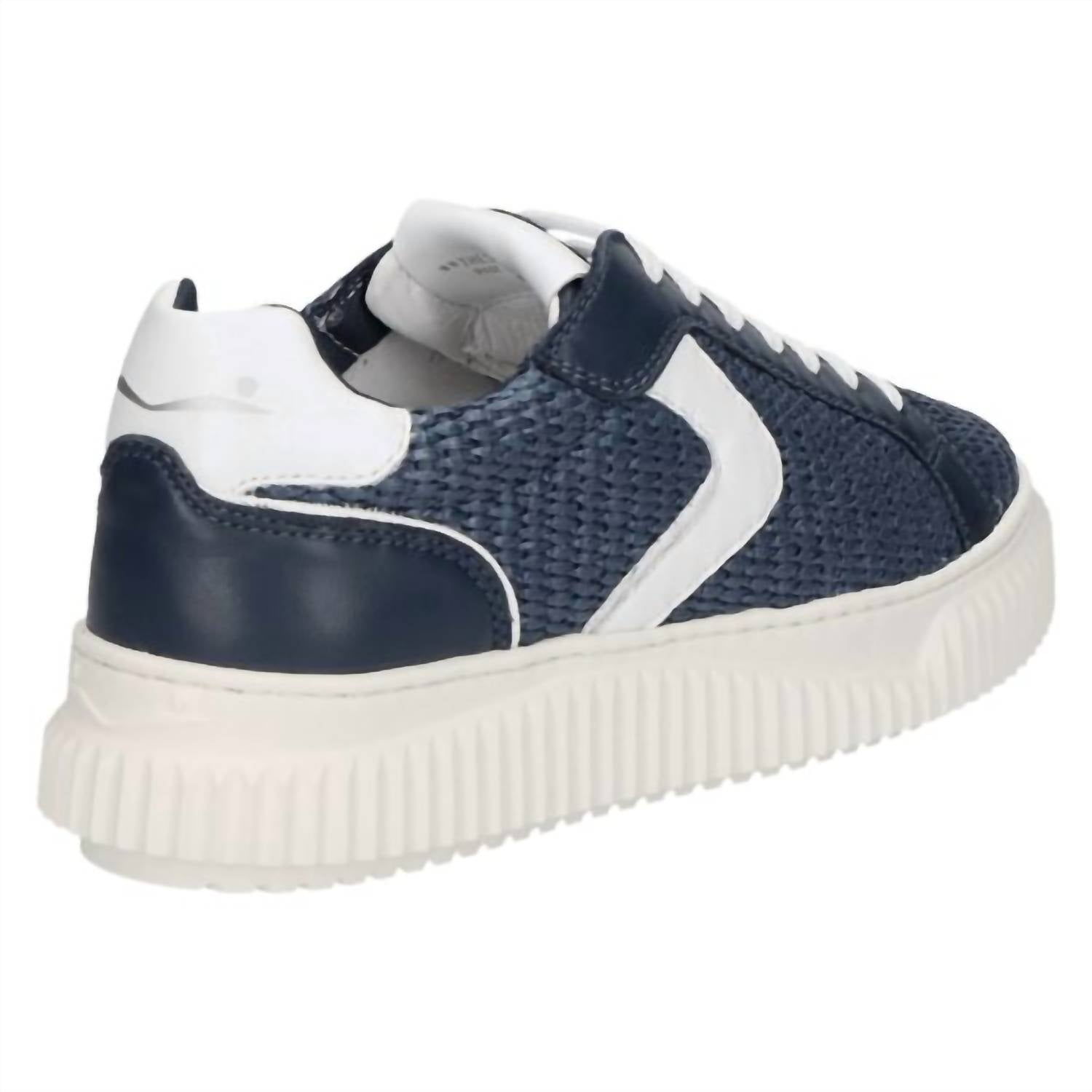 When fashion and function come together seamlessly. Step up your footwear game with the Women's Lipari Raffia Nappa Sneaker by Voile Blanche, crafted for those who embrace preppy style. These sneakers come in a striking blue and white colorway, perfect for travel or celebrating the 4th of July. The design features a round toe and is made from premium braid material, ensuring comfort with a loose insole for added convenience. Ideal for spring adventures, these sneakers effortlessly combine fashion and functionality.