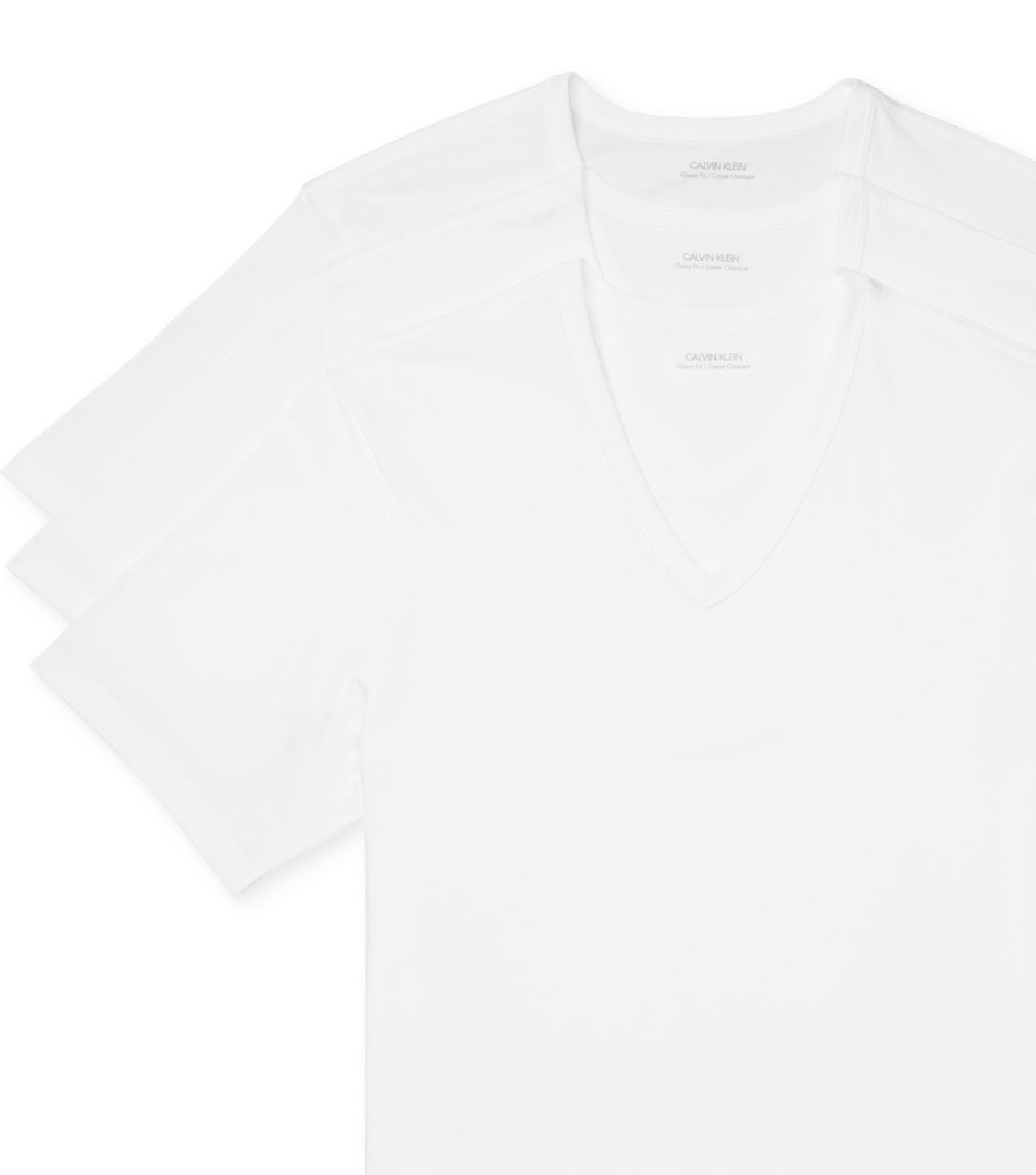 Imported|V-neck|Calvin Klein Underwear logo at the hem with solid fabric|3-pack