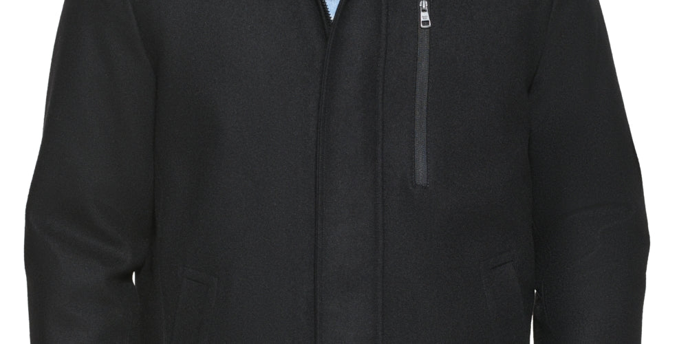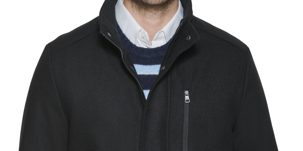 Over a suit or casual evening-wear| this long overcoat by Calvin Klein keeps you warm while maintaining a streamlined modern look with its sleek| minimalist styling
