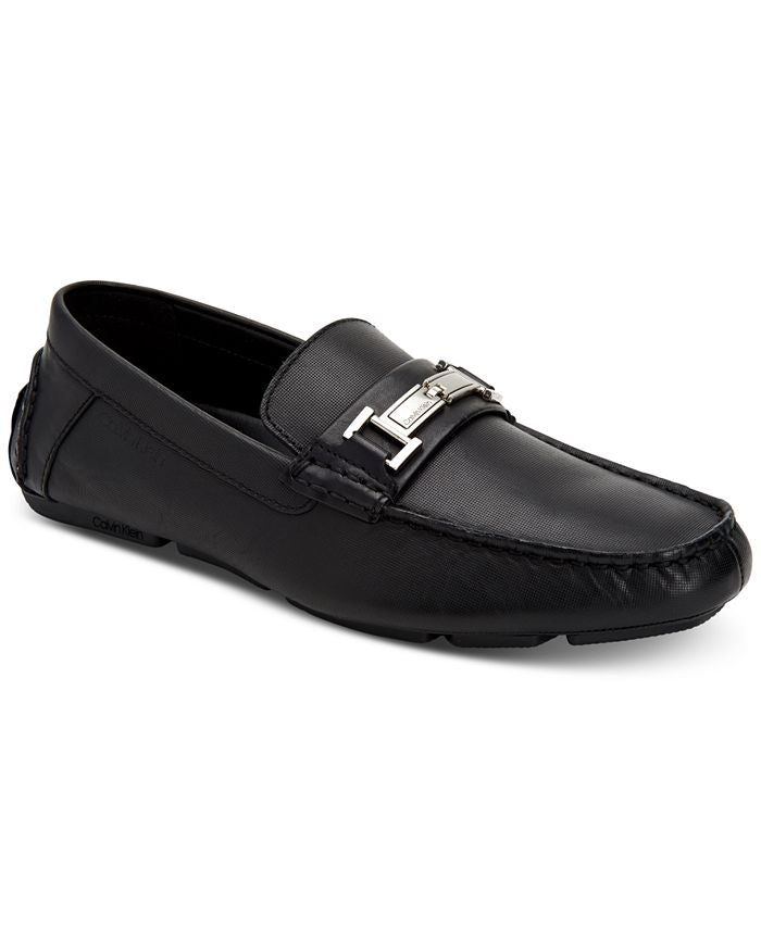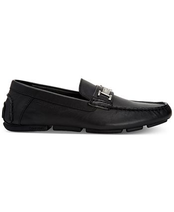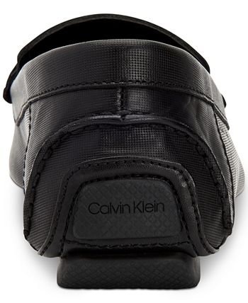 Calvin Klein men's drivers|Split moc toe|Logo bit at vamp|Brand detailing at side|Contrast stitching|Synthetic upper; rubber sole|Imported