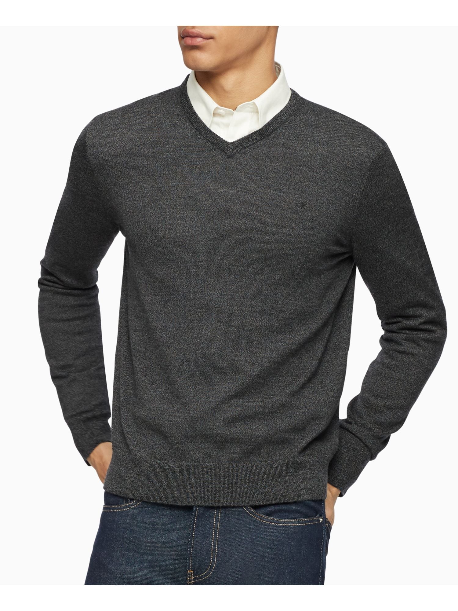 Calvin Klein Men's Merino Wool V Neck Sweater Gray Size X-Small