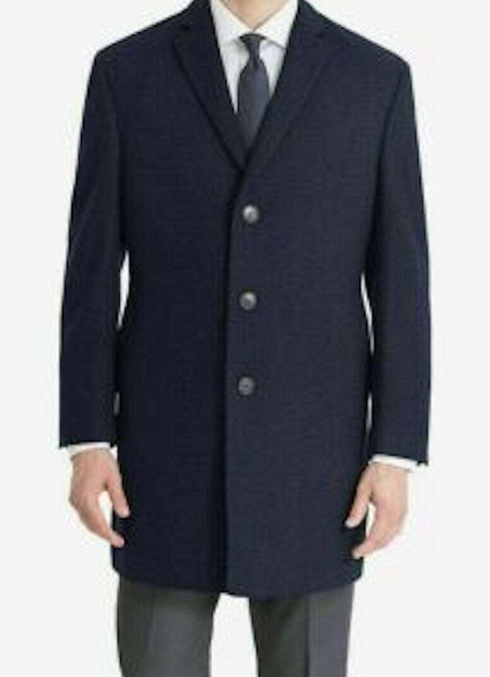 CALVIN KLEIN|Style; Coat|Occasion; Casual|Size; 50R|Material; Wool Blend|Color; Navy|Solid