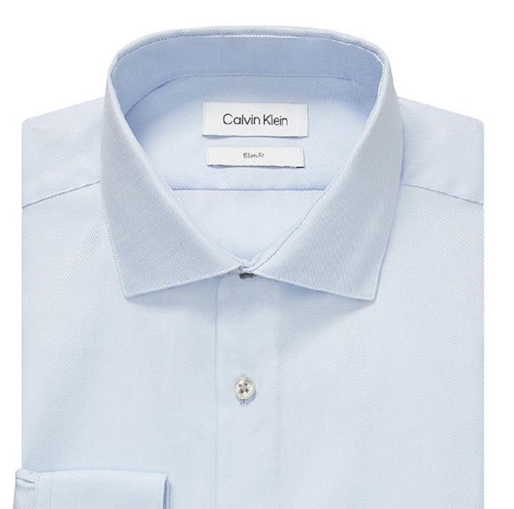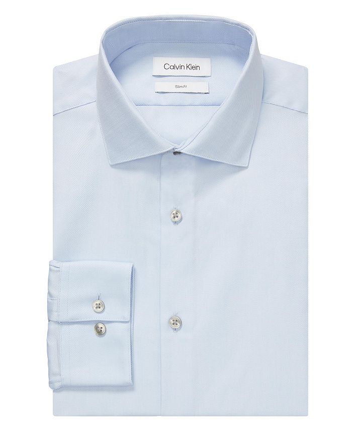 Maintain your cool with the Calvin Klein herringbone dress shirt| in a slim fit. Performance fabric with moisture-wicking technology keeps you dry and comfortable.| A modern| tailored look with a tapered body and slimmer sleeves| A traditional barrel cuff fastened by a single button closure| Imported|