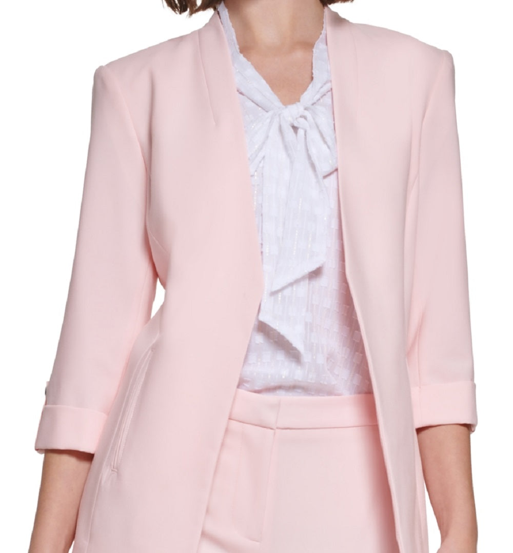 Side welt pockets|3/4-sleeves with roll tabs|Shoulder pads|Lined|Imported|Collarless; open front|Connect with a stylist & get free expert advice online or in stores for your wardrobe