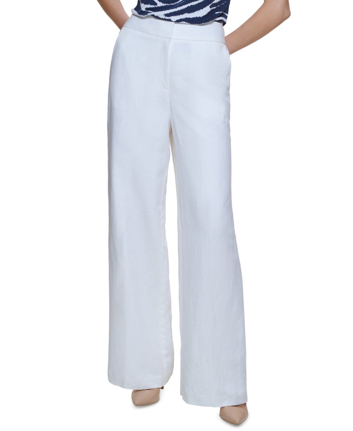 Designed to flatter the petite figure| these wide-leg pants from Calvin Klein will keep your workweek look on trend.| Approx. inseam; 30| High rise; wide leg| Designed to fit and flatter 5'4 and under frame| Zipper closure at front