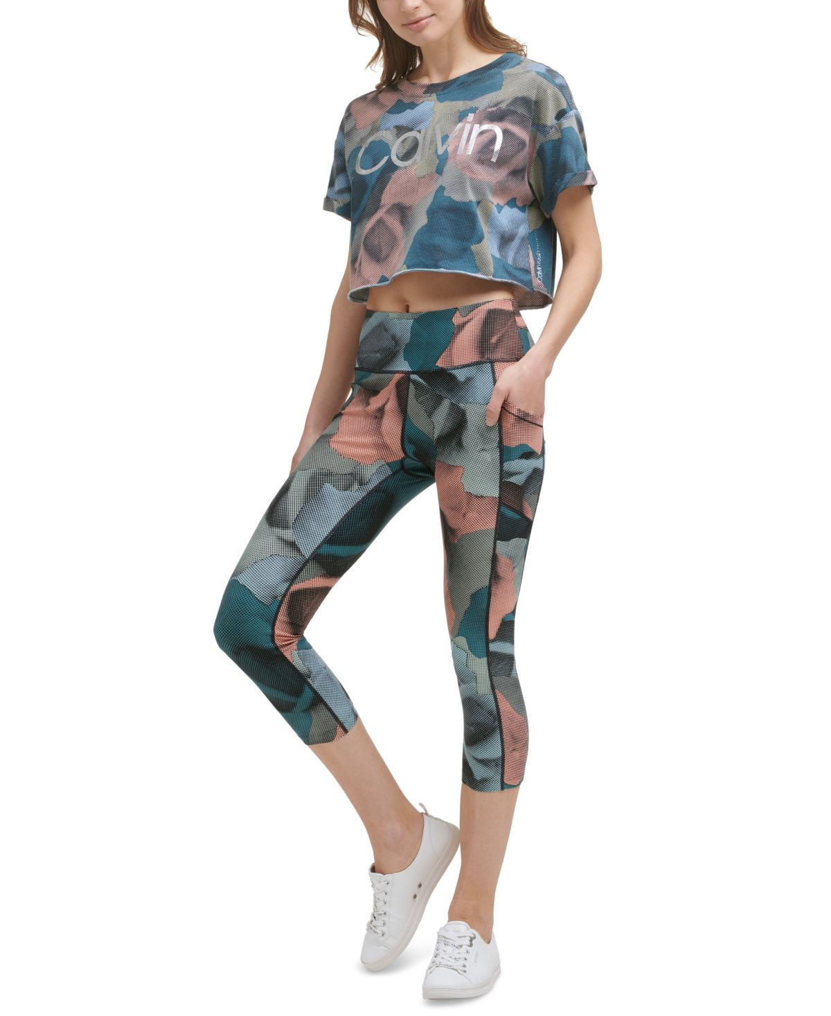 Calvin Klein Women's Performance Printed Cropped Leggings Blue Size Medium
