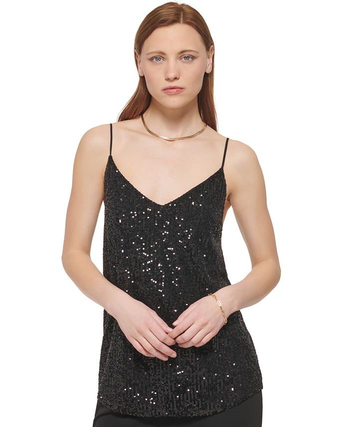 It's your time to shine in Calvin Klein's sequin camisole.| Lined| Imported| | Size & Fit| | Hits at hips