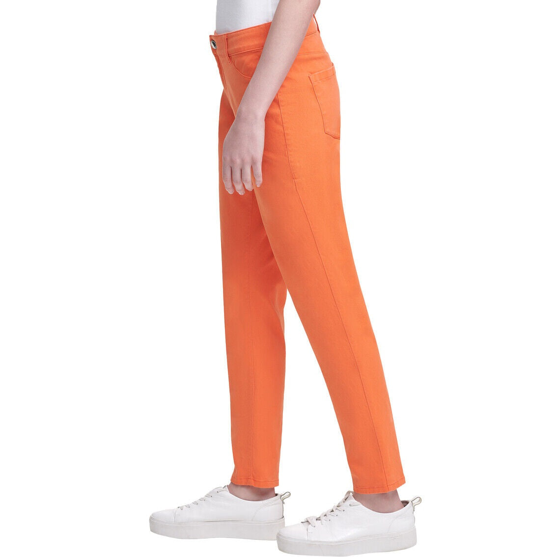 A comfy feel and fresh look| these Calvin Klein pants bring stylish color to stretch twill.| Approx. 29 inseam| Approx. rise; (front) 9-1/2 (back) 14-3/4| Zipper and button closure; belt loops| Faux pockets at front| Cotton/spandex
