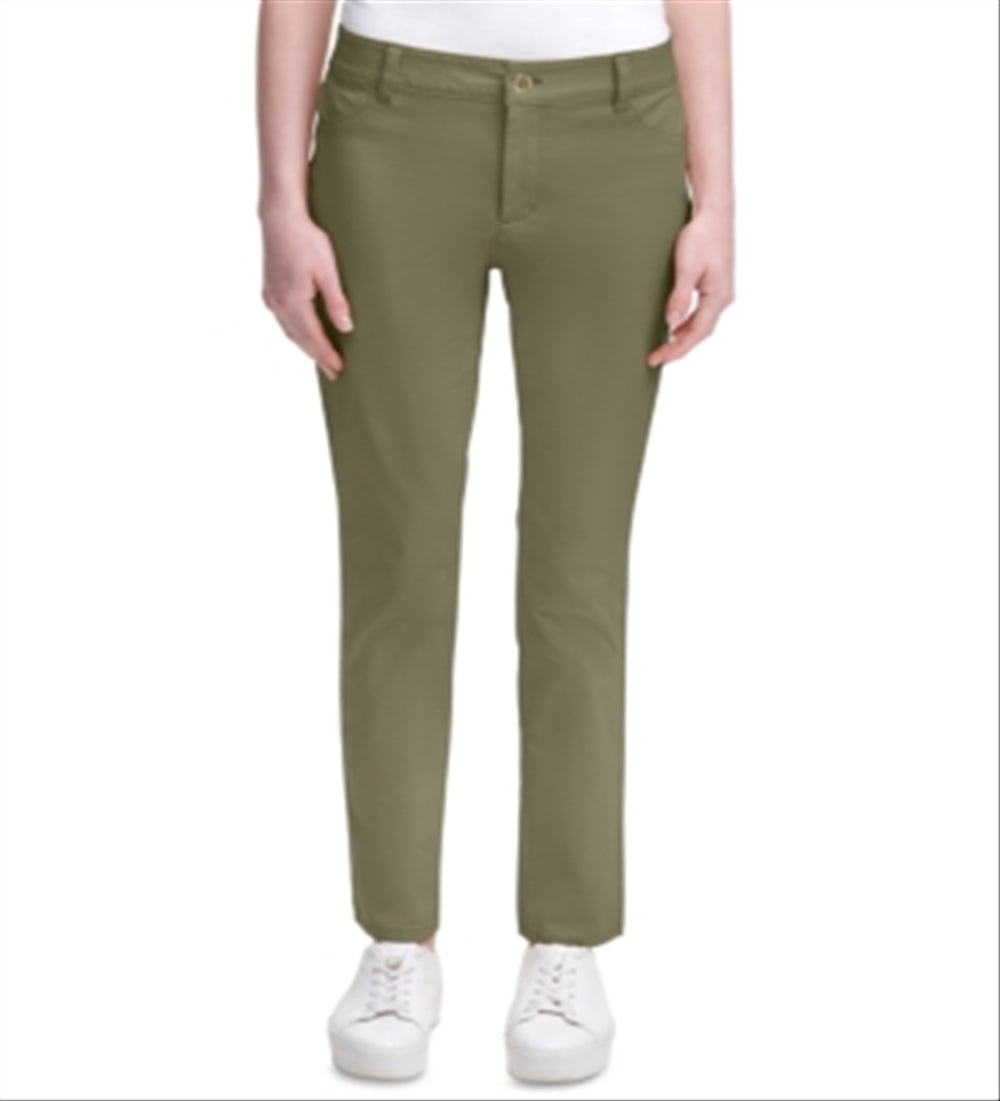 Calvin Klein Women's Stretch Zippered Pocketed Mid Rise Slim Straight Leg Pants Green Size 12