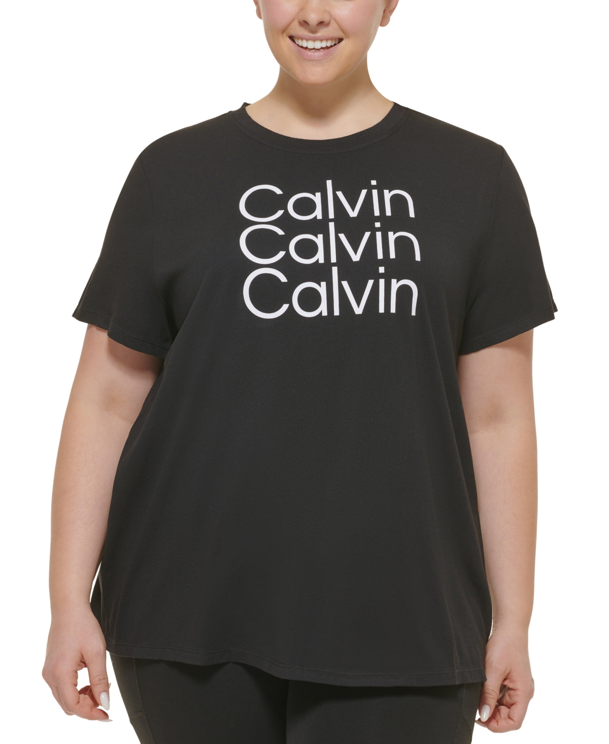 Whether you're exercising or running errands| keep it cute in this plus size logo T shirt from Calvin Klein