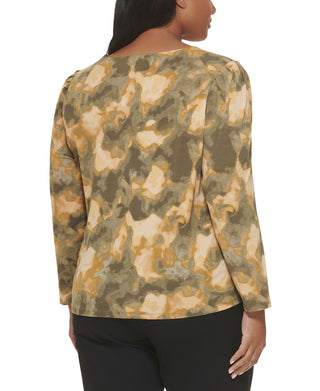 Calvin Klein Women's Printed V Neck Blouse Yellow Size 3X