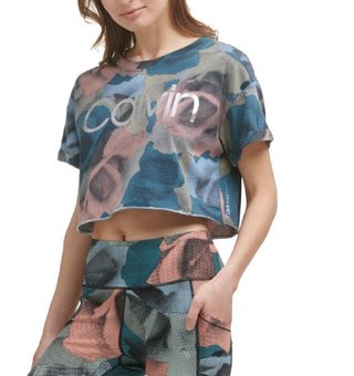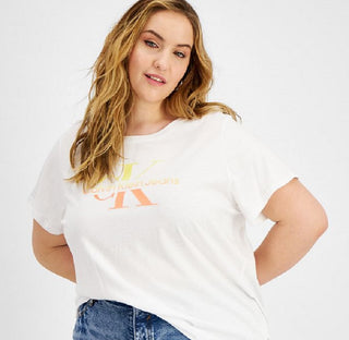 Calvin Klein Women's Watercolor Ck Logo Iconic T-Shirt White Size 2X