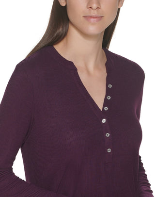 Calvin Klein Women's Long Sleeve Henley Purple Size X-Large