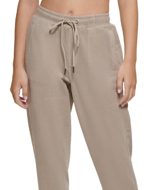 Calvin Klein Women's Garment Dye Smocked Waist Joggers Brown Size Medium