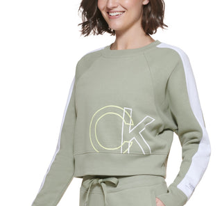 Calvin Klein Women's Cutoff Ck Logo Cropped Sweatshirt Green Size Small
