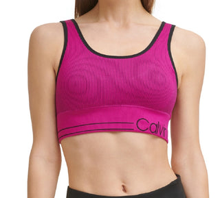 Calvin Klein Women's Seamless Ribbed Medium Impact Sports Bra Pink Size X-Large