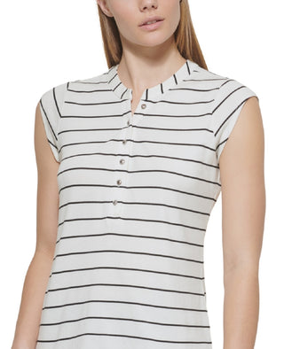 Calvin Klein Women's Striped Cap Sleeve Henley White Size X-Large
