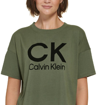 Calvin Klein Women's Stacked Flocking Logo Print Cotton T-Shirt Green Size Large
