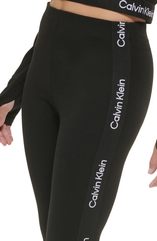 Calvin Klein Women's Minimal Logo Tape High Waist Full Length Leggings Black Size Large