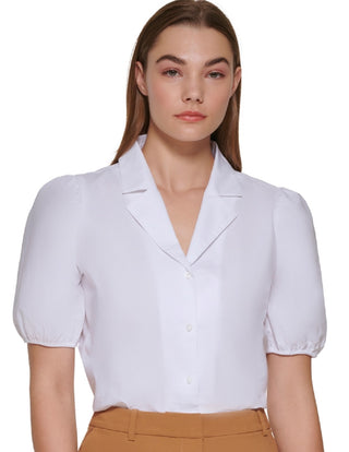 Calvin Klein Women's Short Sleeve Blouse White Size X-Large