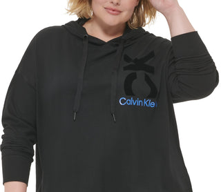 Calvin Klein Women's Logo Cotton Hooded Sweatshirt Black Size 3X