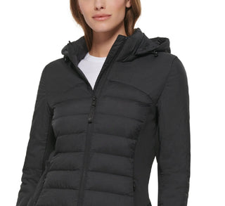 Calvin Klein Women's Hooded Mix Media Coat Black Size X-Large