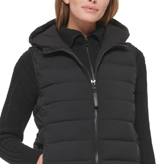 Calvin Klein Women's Hooded Quilted Zip Front Vest Black Size Large