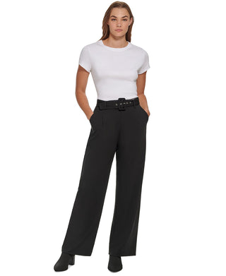 Calvin Klein Women's High Waist Belted Ponte Pants Black Size Large