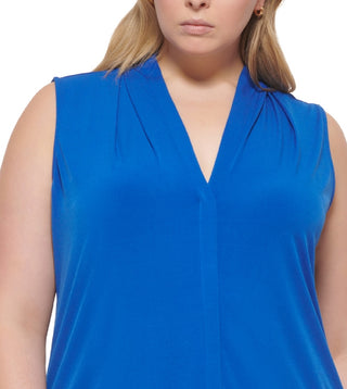 Calvin Klein Women's Solid V Neck Top Blue Size 1X