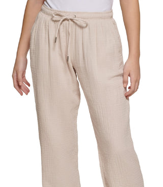 Calvin Klein Women's Cotton Crepe Straight Fit Pants Brown Size Petite Large