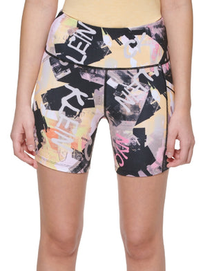 Calvin Klein Women's Printed Side Pocket Bike Shorts Black Size Medium