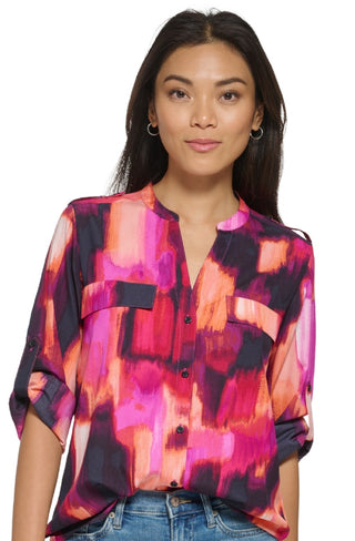 Calvin Klein Women's Long Sleeve Button Down Blouse Orange Size Medium