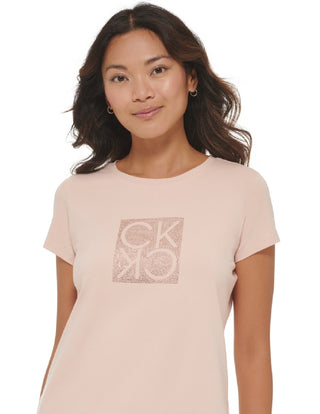 Calvin Klein Women's Short Sleeve Rhinestone Logo T-Shirt Pink Size X-Large