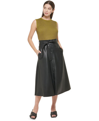 Calvin Klein Women's Tie Waist Faux Leather Midi Skirt Black Size 10