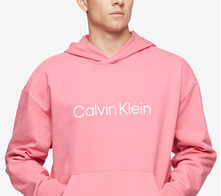 Calvin Klein Men's Relaxed Fit Standard Logo Terry Hoodie Pink Size Medium