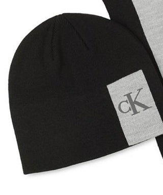 Calvin Klein Men's Logo Scarf & Beanie Hat Set Black Size Regular