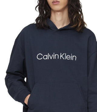 Calvin Klein Men's Relaxed Fit Standard Logo Terry Hoodie Blue Size XX-Large