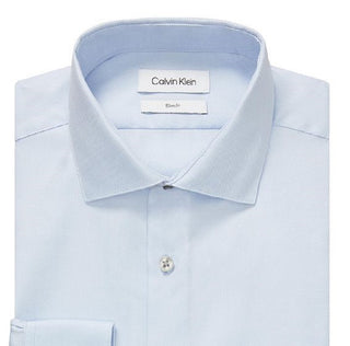 Calvin Klein Men's Slim Fit Wrinkle Free Herringbone Dress Shirt Blue Size 32X33