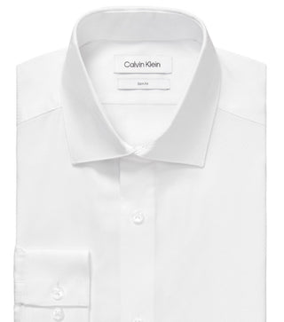Calvin Klein Men's Steel Slim Fit Wrinkle Free Herringbone Dress Shirt White Size 15.5X32X33