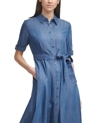 Calvin Klein Women's Belted Denim Midi Shirtdress Blue Size 16
