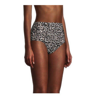 Calvin Klein Women's Animal-Print Pleated High-Waist Bikini Bottoms Swimsuit Black Size Medium