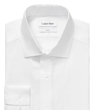 Calvin Klein Men's Steel Slim Fit Wrinkle Free Herringbone Dress Shirt White Size 17.5X34X35