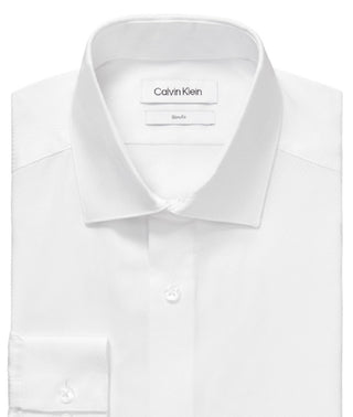 Calvin Klein Men's Steel Slim Fit Wrinkle Free Herringbone Dress Shirt White Size 15.5X34X35