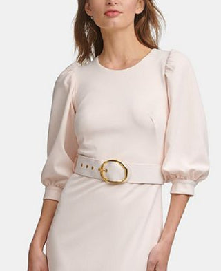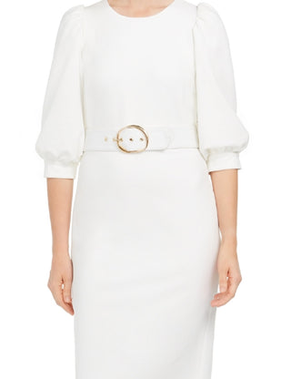 Calvin Klein Women's Balloon Sleeve Belted Sheath Dress White Size 8