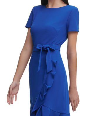 Calvin Klein Women's Ruffled Tulip Hem Crepe Dress Blue Size 16