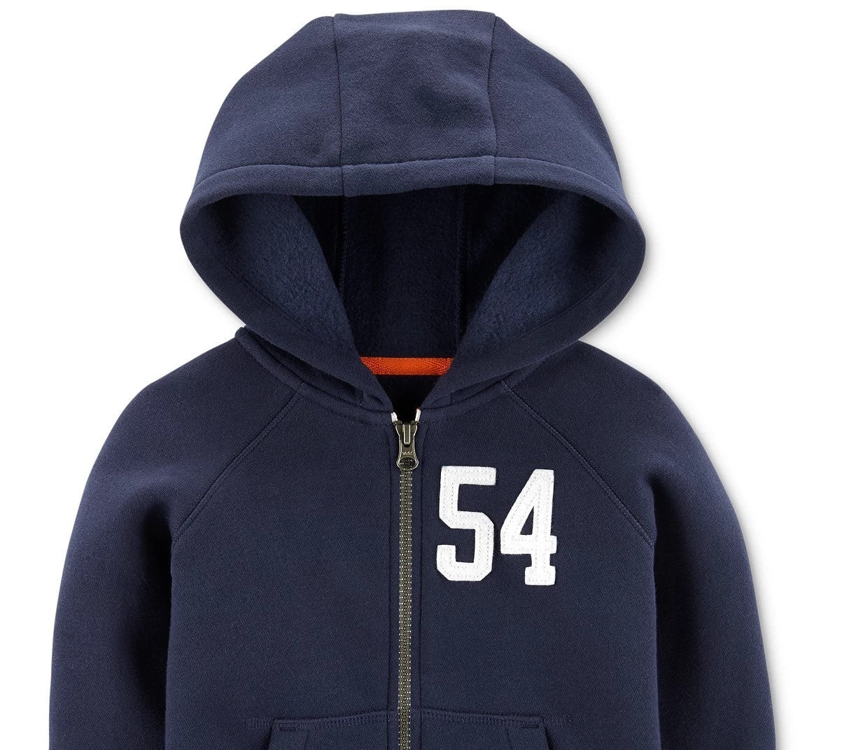 Hooded|Ribbed cuffs and hem|Number appliqués at left chest|Split kangaroo pockets|Zipper closure at front|Cotton/polyester|Machine washable